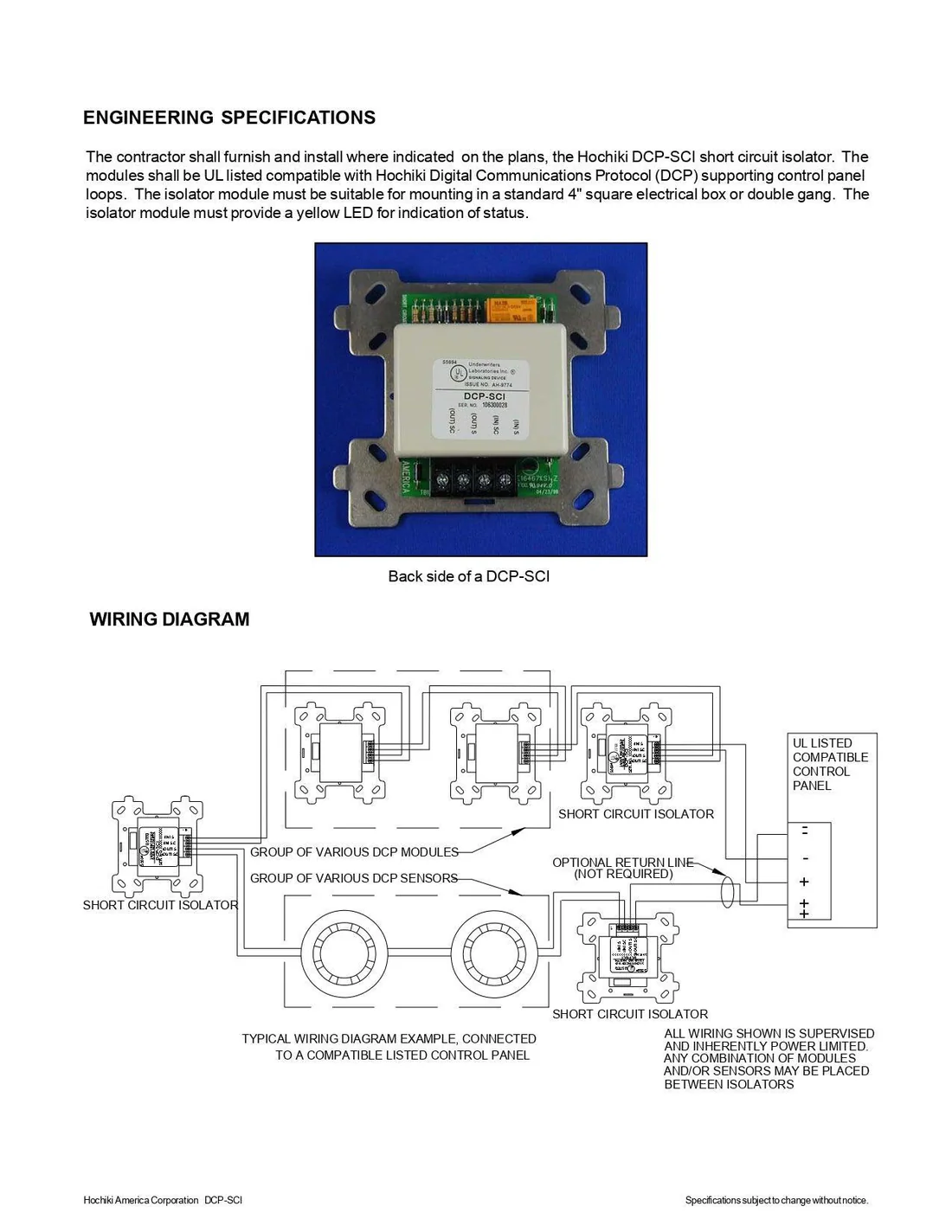 El modelo SCI es compatible con sistemas direccionables Hochiki y se emplea habitualmente en instalaciones de media y gran escala donde la continuidad operativa del sistema es un requisito técnico esencial.